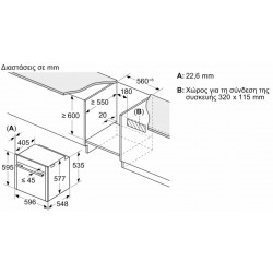 - • Διαστάσεις εντοιχισμού (ΥxΠxΒ): 585 mm - 595 mm x 560 mm - 568 mm x 550 mm