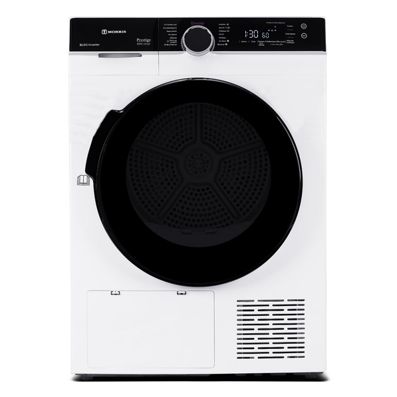 Λευκό στεγνωτήριο χωρητικότητας 10 κιλών, σχεδιασμένο για υψηλές απαιτήσεις σε απόδοση, οικονομία και φροντίδα των ρούχων. Το προηγμένο σύστημα στεγνώματος με αντλία θερμότητας εξασφαλίζει αποδοτικό και ενεργειακά αποδοτικό στέγνωμα, προστατεύοντας παράλληλα την ποιότητα των ρούχων. Με 14 επιλεγμένα προγράμματα στεγνώματος, προσαρμόζεται ιδανικά σε κάθε τύπο υφάσματος και ανάγκη της καθημερινότητας, ενώ το κομψό LED Display με ένδειξη υπολειπόμενου χρόνου προσφέρει απόλυτο έλεγχο και άνεση στη χρήση.