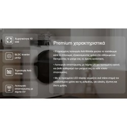 Το προηγμένο BLDC Inverter μοτέρ εξασφαλίζει κορυφαία απόδοση, αθόρυβη λειτουργία και σημαντική εξοικονόμηση ενέργειας, προσφέροντας έως και 70% χαμηλότερη κατανάλωση σε σχέση με ένα κλασικό μοτέρ. Ο σύγχρονος σχεδιασμός του μειώνει δραστικά τη φθορά και τις μηχανικές καταπονήσεις, προσφέροντας μεγαλύτερη διάρκεια ζωής, σταθερή λειτουργία και υψηλή αξιοπιστία στον χρόνο. Έτσι, το στεγνωτήριο συνδυάζει οικονομία, αντοχή και premium ποιότητα λειτουργίας σε κάθε κύκλο.